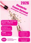 - Glandorfer Frauen-KarnevalGlandorfer Frauen-Karneval Saal Herbermann – Münsterstraße 25 am Donnerstag, 12.02.2026 um 16.59 Uhr Einlass ab 16.11 Uhr mit eigenem Bühnenprogramm und DJ Soundvision Eintritt: 25,- Euro inkl. Imbiss Kartenvorverkauf 30.01.2026 15 – 17 Uhr 30.01.2026 15 – 17 Uhr 30.01.2026 15 – 17 Uhr Der Verzehr selbst mitgebrachter Getränke ist im Saal nicht erlaubt.